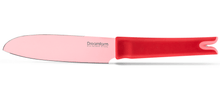 Its unique blade features a razor sharp Santoku-style knife edge on one side and a rounded spreading edge on the other. Add to that a non-stick blade coating so it will never rust in the dishwasher, a clever plastic wrap cutter built into its handle, a soft rubber handle grip for control, and a protective sheath that lets you take your Oni in your bag to work or on picnics.